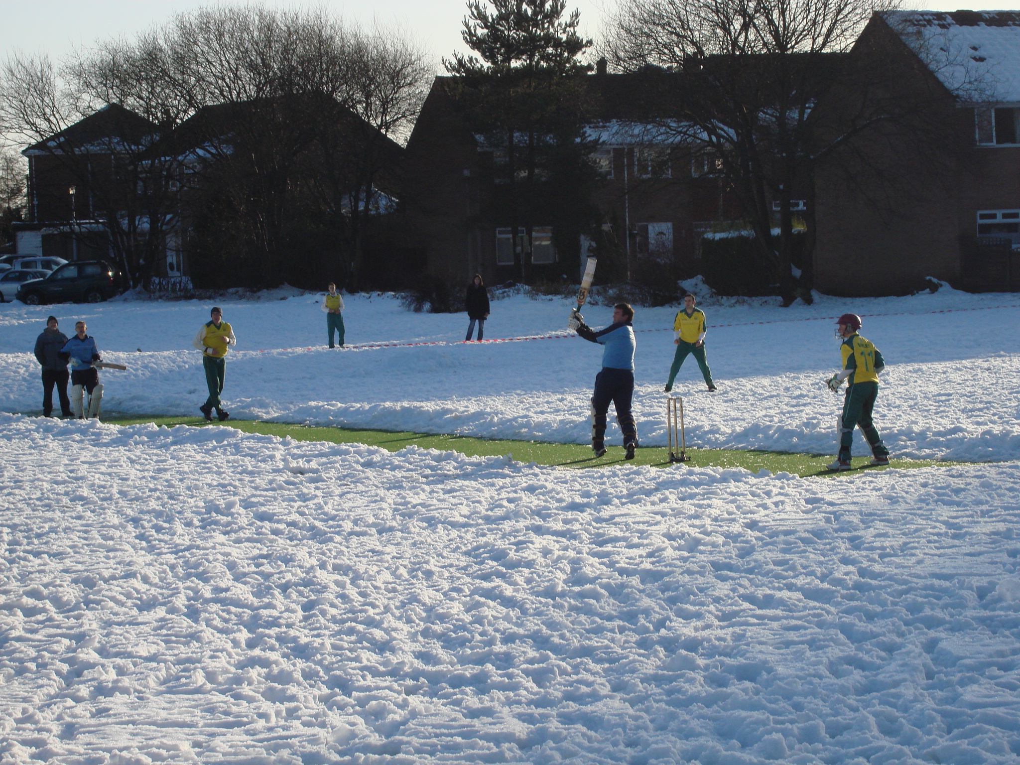 This was the first time the game has been played at Tottington thanks to the installation of their new artificial wicket in October. The recent heavy snowfall meant that the game was played in perfect seasonal surroundings with the outfield covered with a thick layer of snow. There was a great crowd who enjoyed the facilities and the winter menu included mulled wine, lentil soup and hot pies.