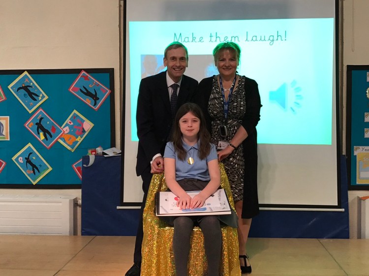 I was delighted to be able to start yesterday by visiting Old Hall Primary School in Brandlesholme to take part in the final of their Voice Box competition. This is a annual national joke competition designed to raise awareness of the importance of communication in a light hearted way, it is a joint initiative of the Royal College of Speech and Language Therapists and The Communication Trust. Each pupil had entered a joke and the best three or four from each class were put through to the final. All the teachers entered into the spirit by going on stage and telling their own joke. I then said a few words and had my own attempt at telling a joke. The highlight of the final was when each pupil whose joke had made it through to the final came up and read out their own joke. I then announced Kaycie-Leigh Olive a budding comedienne as the overall winner.